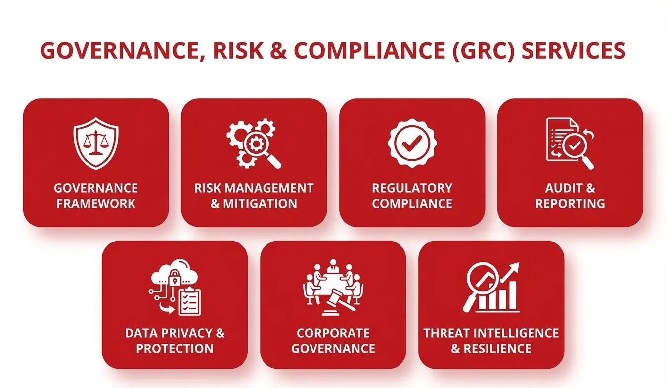 With our GRC services, you gain a holistic and structured approach to governance and security, ensuring reduced risk exposure, improved compliance posture, and a resilient, future-ready organization aligned with both local and international standards.